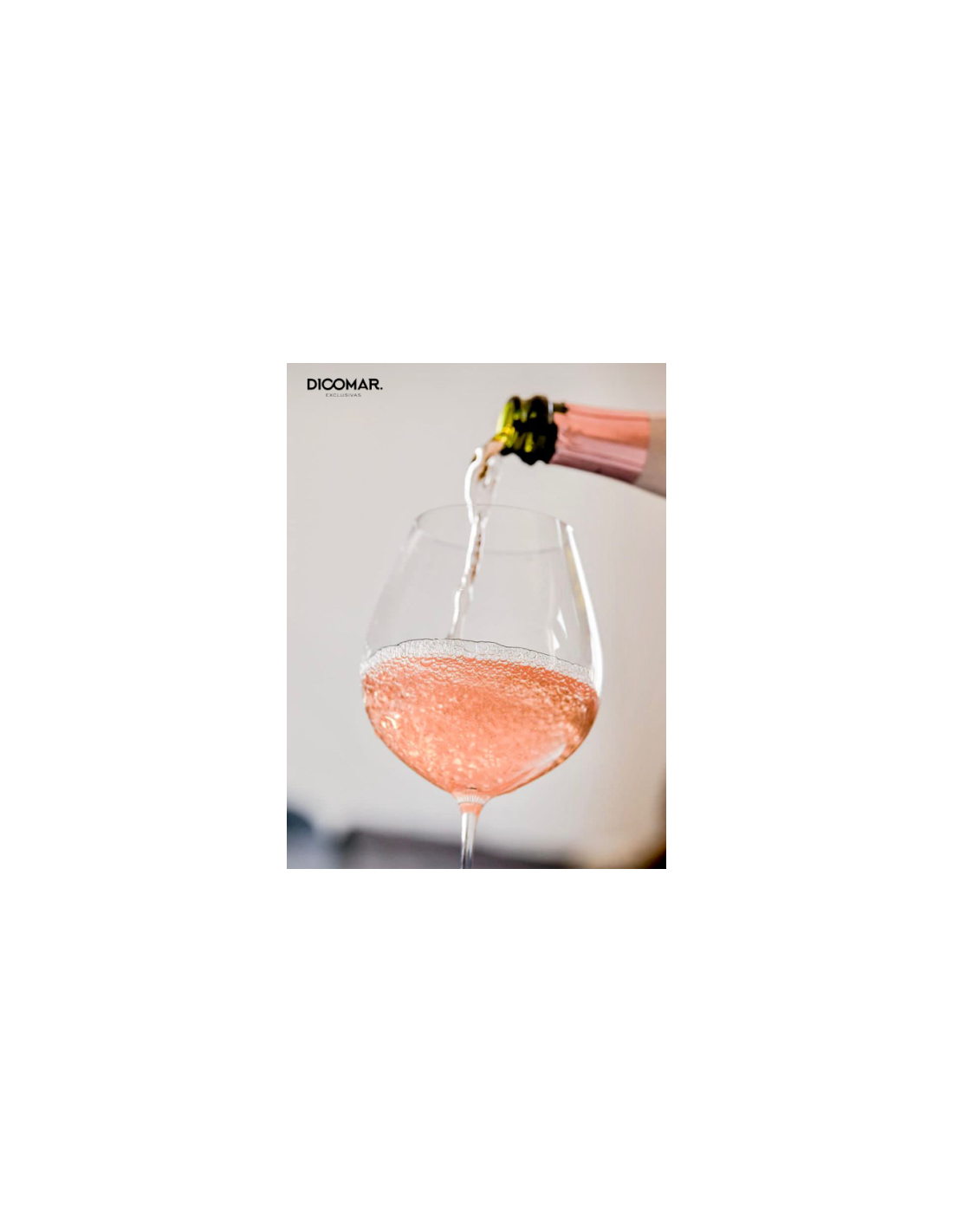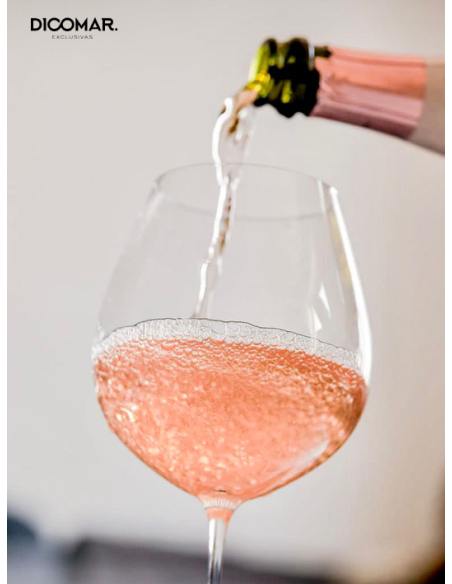 Rosa pálido con reflejos de frambuesa; brillo limpio y una burbuja fina que forma corona con facilidad.