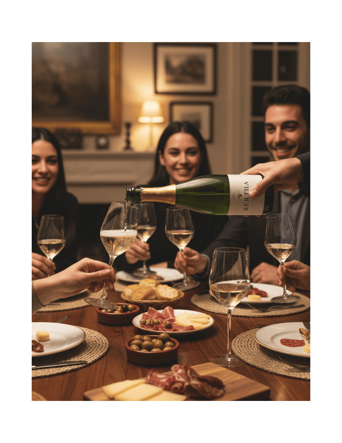 Bertha es perfecto cuando quieras un cava “todoterreno” que cumpla siempre: reuniones con amigos, brindis improvisados o esas comidas donde buscas un espumoso fresco y directo que realce el momento.